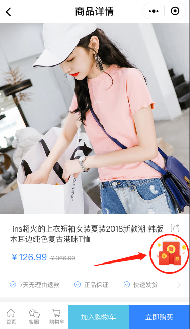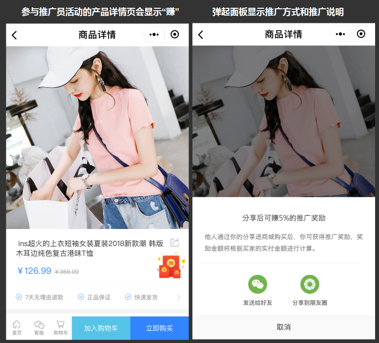 b.在參與推廣活動的產(chǎn)品的產(chǎn)品詳情頁點擊“賺”的標(biāo)識,將產(chǎn)品分享給好友或朋友圈。