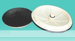 膜片式微孔曝氣器是80年代研制的新型曝氣裝置,該裝置曝氣氣泡小、氣液面積大,氣泡擴散均勻,不會產(chǎn)生孔眼堵塞,耐腐蝕性強。但通過多年的運行出現(xiàn)了一些難以解決的不足。如:膜片脫落、膜片撕裂、膜片打不開、污泥進入支氣管等問題。因此該公司研究開發(fā)部與國內(nèi)外許多院校和科研單位合作吸收國際先進經(jīng)驗攻克了各項技術(shù)難關(guān),對膜片曝氣器進行了改革,研制開發(fā)了二十一世紀(jì)國際先進水平的新一代盤式膜片微孔曝氣器。