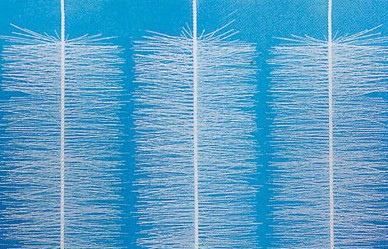 彈性立體填料篩選了聚烯烴類和聚酰胺中的幾種耐腐、耐溫、耐老化的優(yōu)質(zhì)品種,混合以親水、吸附、抗熱氧等助劑,采用特殊的拉絲,絲條制毛工藝,將絲條穿插固著在耐腐、高強度的中心繩上,由于選材和工藝配方精良,剛?cè)徇m度,使絲條呈立體均勻排列輻射狀態(tài),制成了懸掛式立體彈性填料的單體,填料在有效區(qū)域內(nèi)能立體全方位均勻舒展?jié)M布,使氣、水、生物膜得到充分混滲接觸交換,生物膜不僅能均勻的著床在每一根絲條上,保持良好的活性和空隙可變性,而且能在運行過程中獲得愈來愈大的比表面積,又能進(jìn)行良好的新陳代謝,這一特征與現(xiàn)象是國內(nèi)目前其他填料不可比擬的。